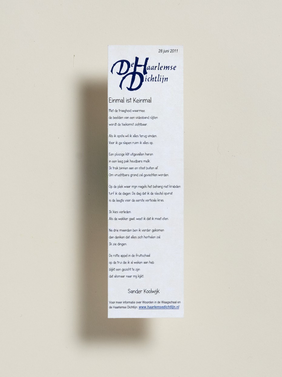 De boekenlegger verscheen in het kader van het poëziefestival De Haarlemse Dichtlijn, 2011